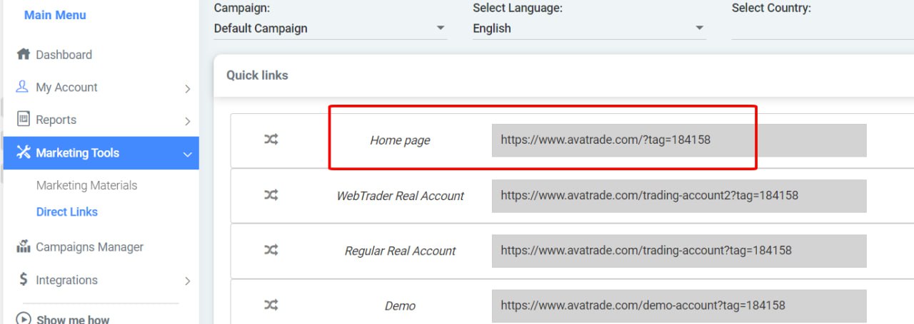 – Go to the IB management dashboard: https://aff.avapartner.com/dashboard