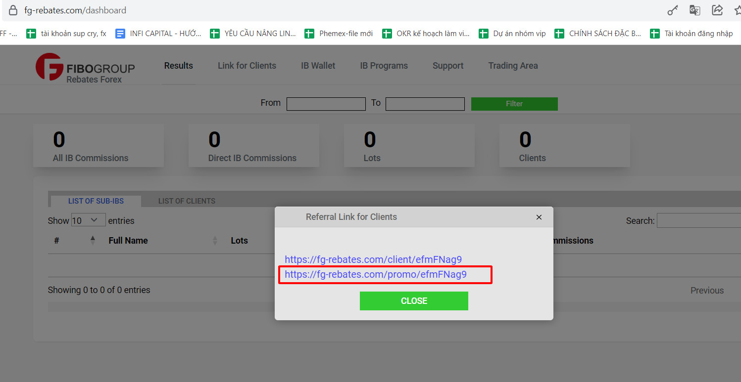 – Go to the IB management dashboard: https://fg-rebates.com/sib/4sQ0JcoP