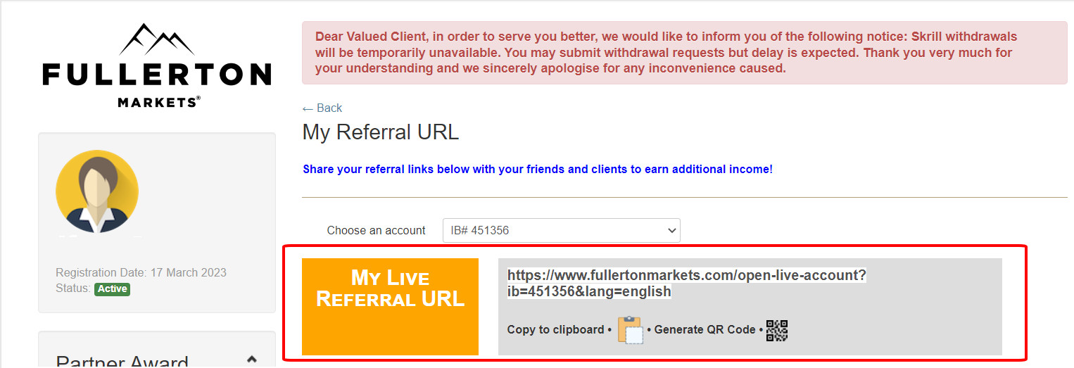 – Go to the IB management dashboard: Fullerton Markets Suite