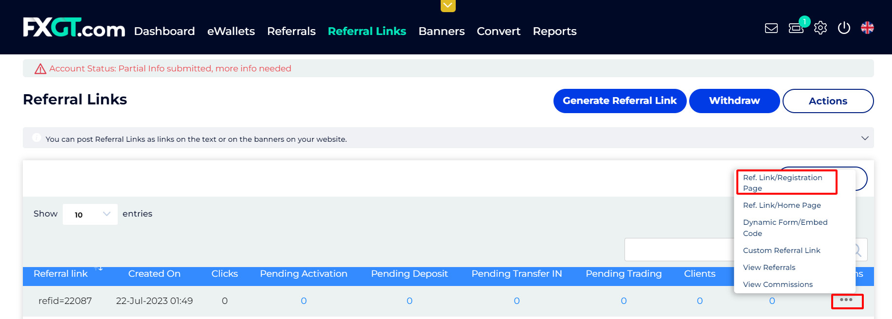 – Go to the IB management dashboard: Login – Affiliate Portal (fxgt.com)