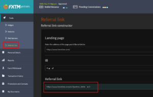 – Go to the IB management dashboard: https://profile.fxtmpartners.com/en/