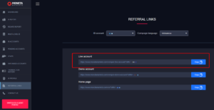 – Go to the IB management dashboard: https://myaccount.monetamarkets.com/home