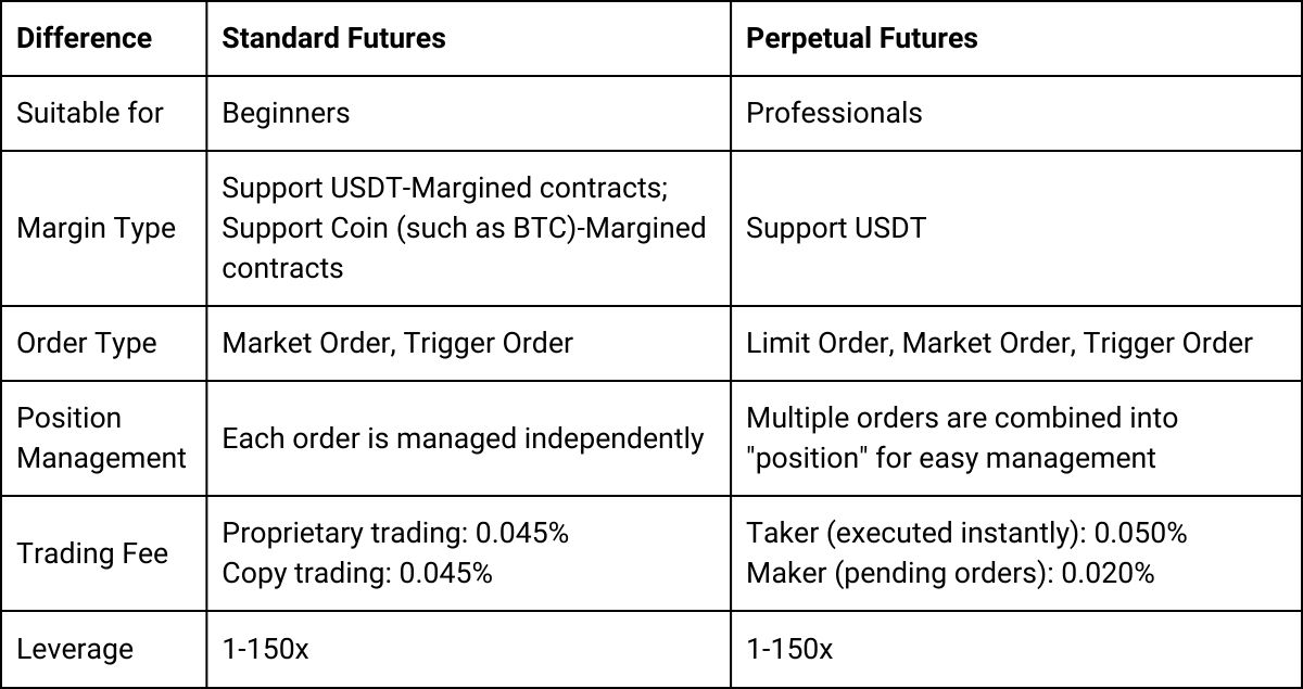 2. Differences between BingX Standard Futures and Perpetual Futures