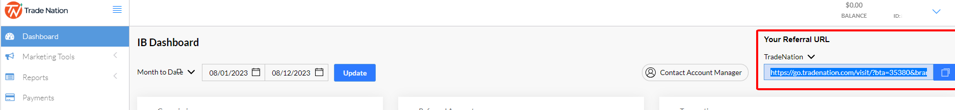 – Go to the IB management dashboard: https://go.tradenation.com/login/